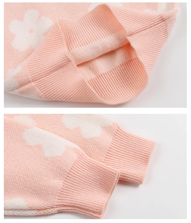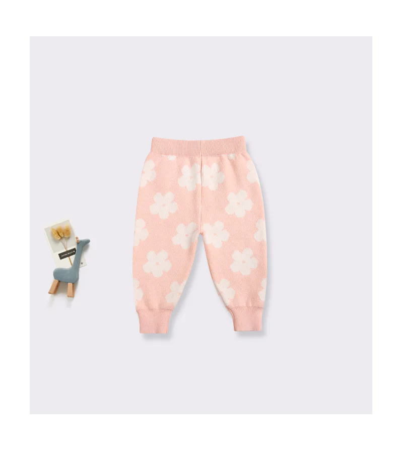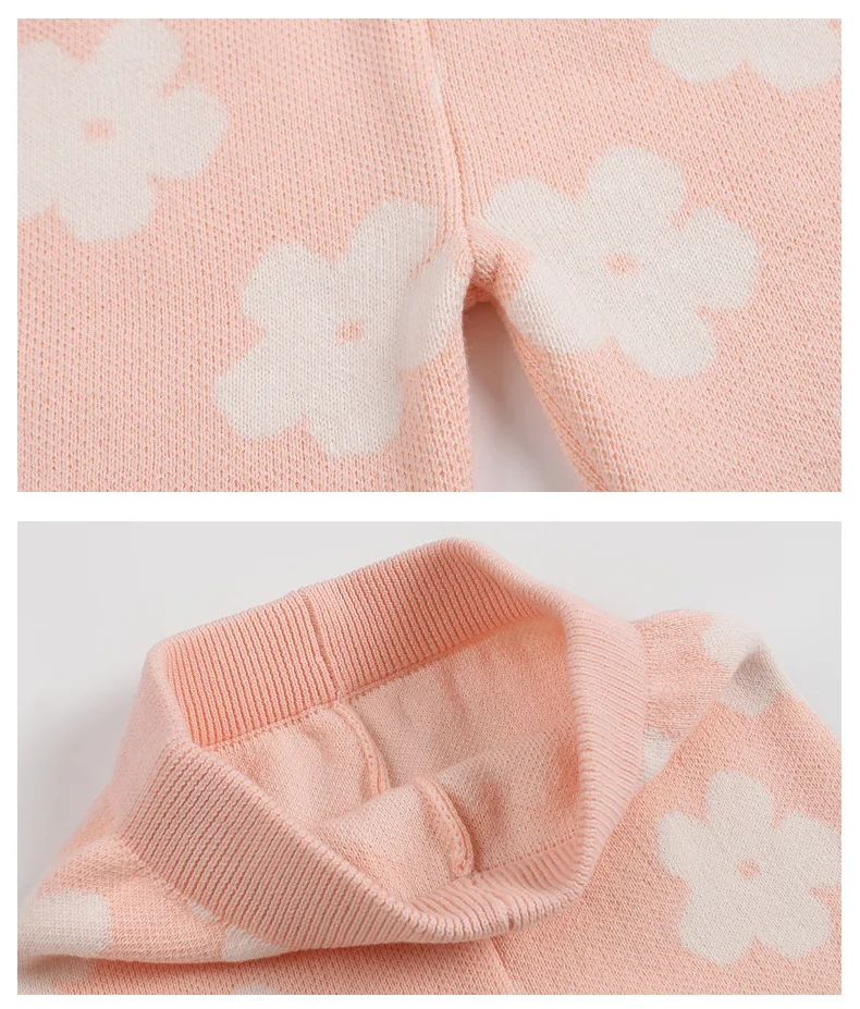 0-3T Newborn Kid Baby Girl Knit Clothes Set Baby Sweater Set Flower Print Knitted Pullover Top Pant Suit Warm Winter Outfit