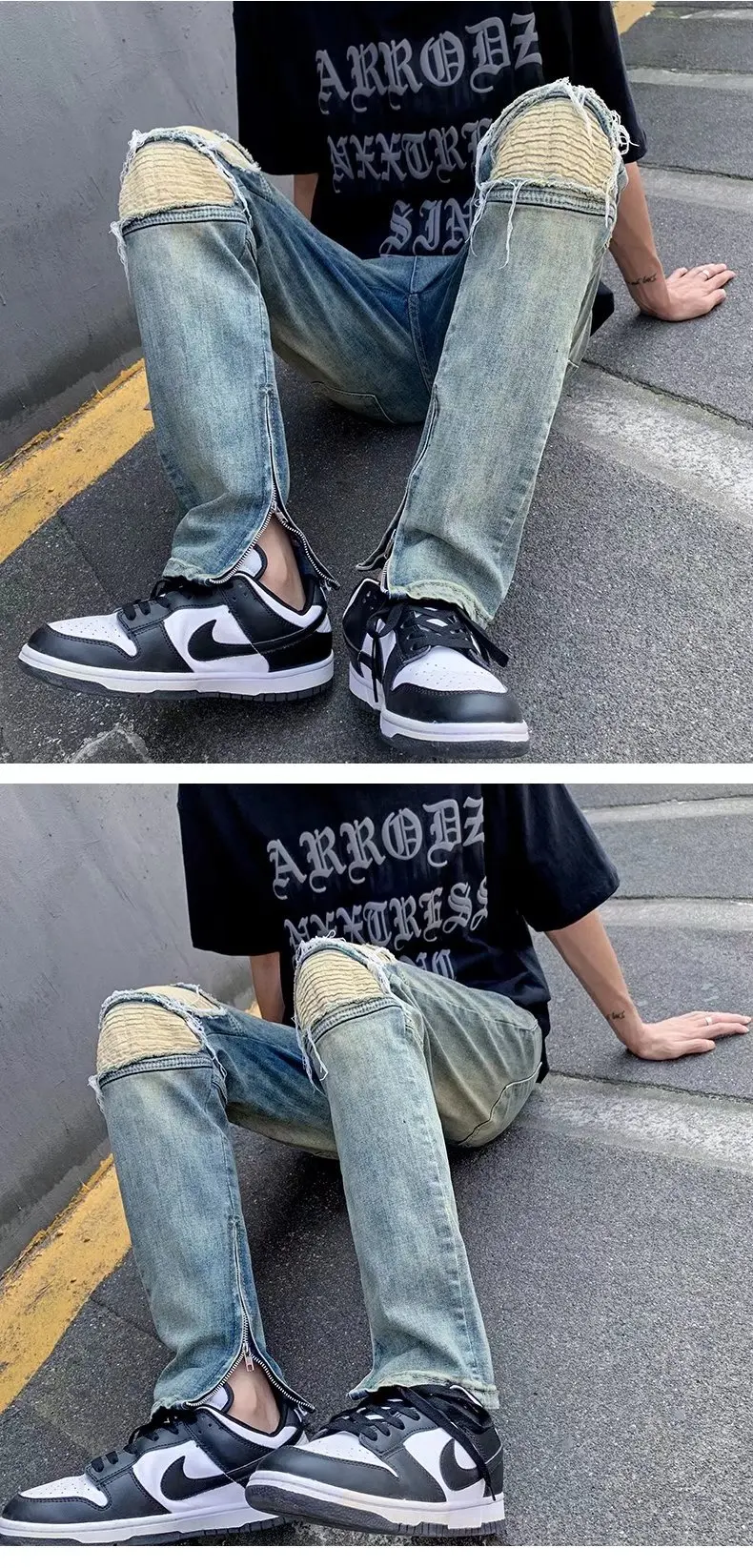 2023 Y2K Fashion Stretch Slim Ripped Jeans Pants For Men Clothing Ankle Zipper Vintage Skinny Biker Denim Trousers Ropa Hombre