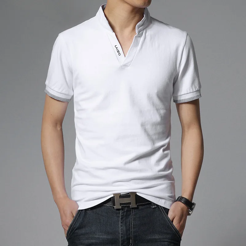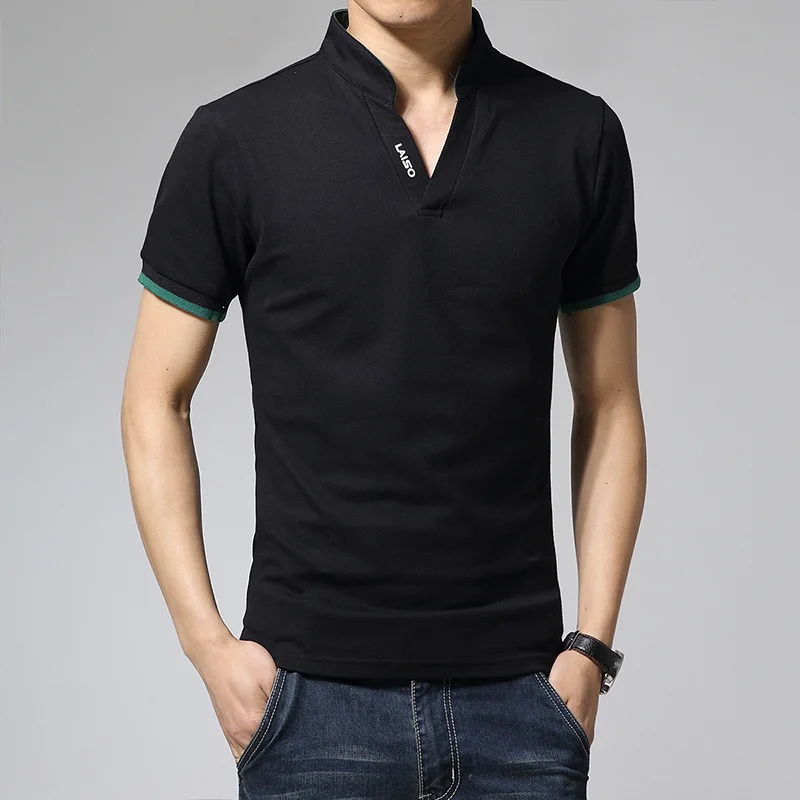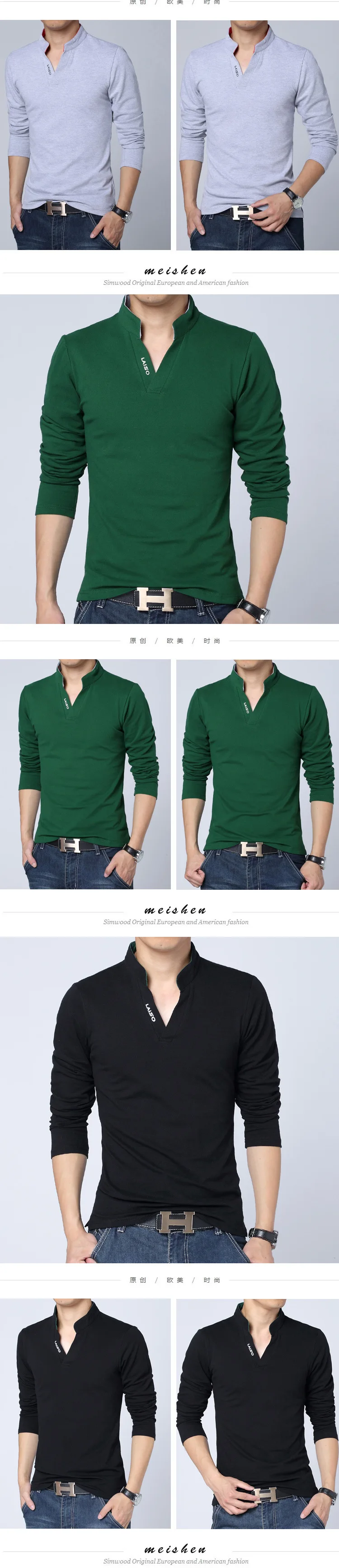 2024 New Fashion Men Cotton Polo Shirt, Leisure Stand Collar Long Sleeve Mens V Neck POLO Shirts, Asian Size Male T-shirt Top