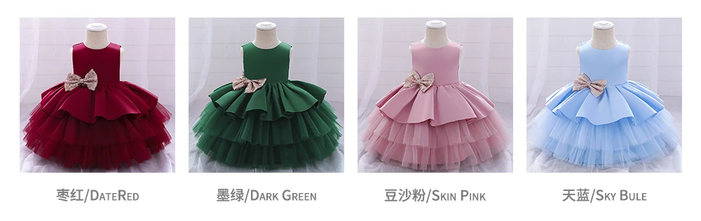 2024 Summer Sequin Big Bow Baby Girl Dress 1st First Birthday Party Wedding Dress For Girl Princess Evening Dresses Kid Clothes