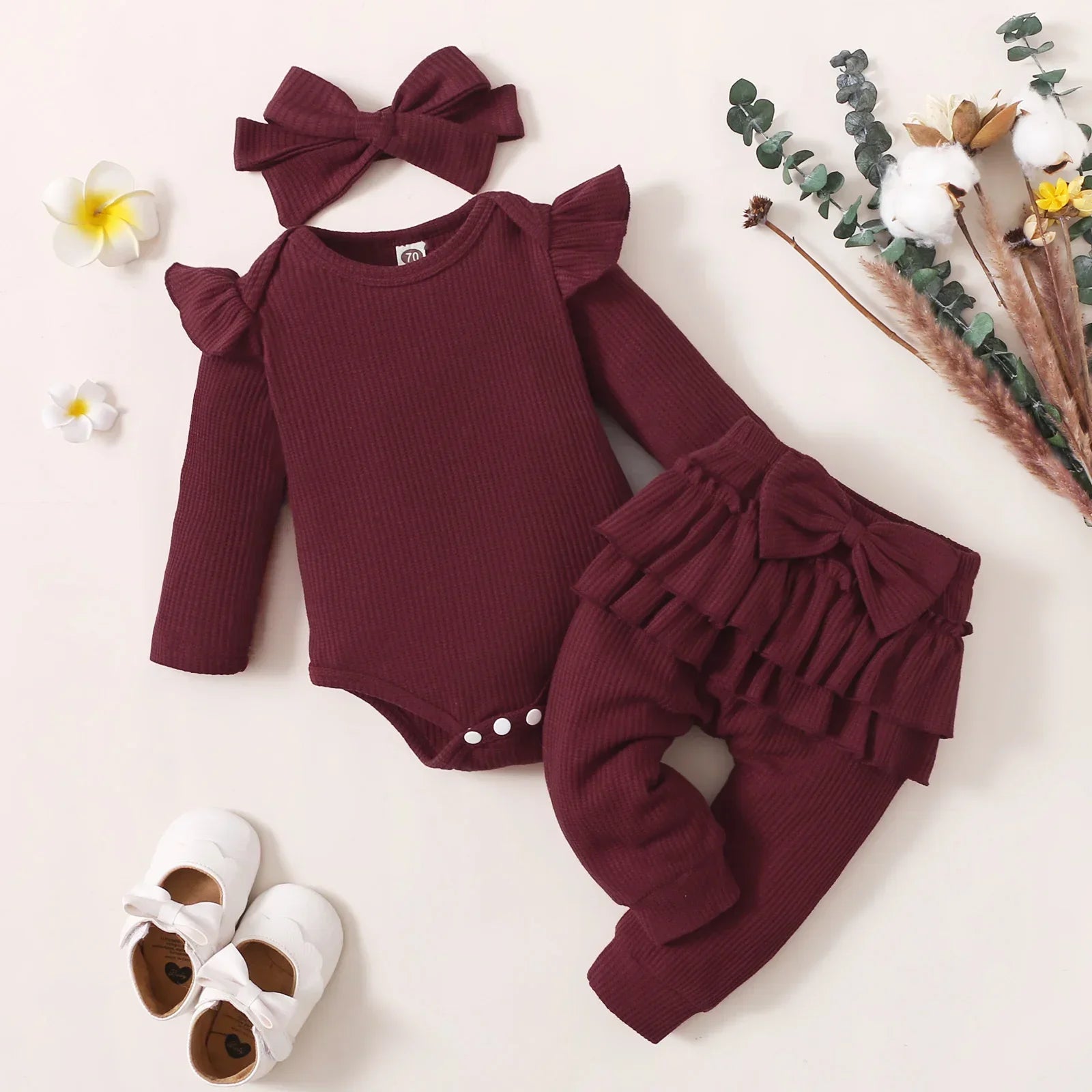 3Pcs Newborn Baby Girl Clothes Sets Infant Outfit Ruffles Romper Top Bow Leopard Pants New Born Autumn Fall Toddler Clothing