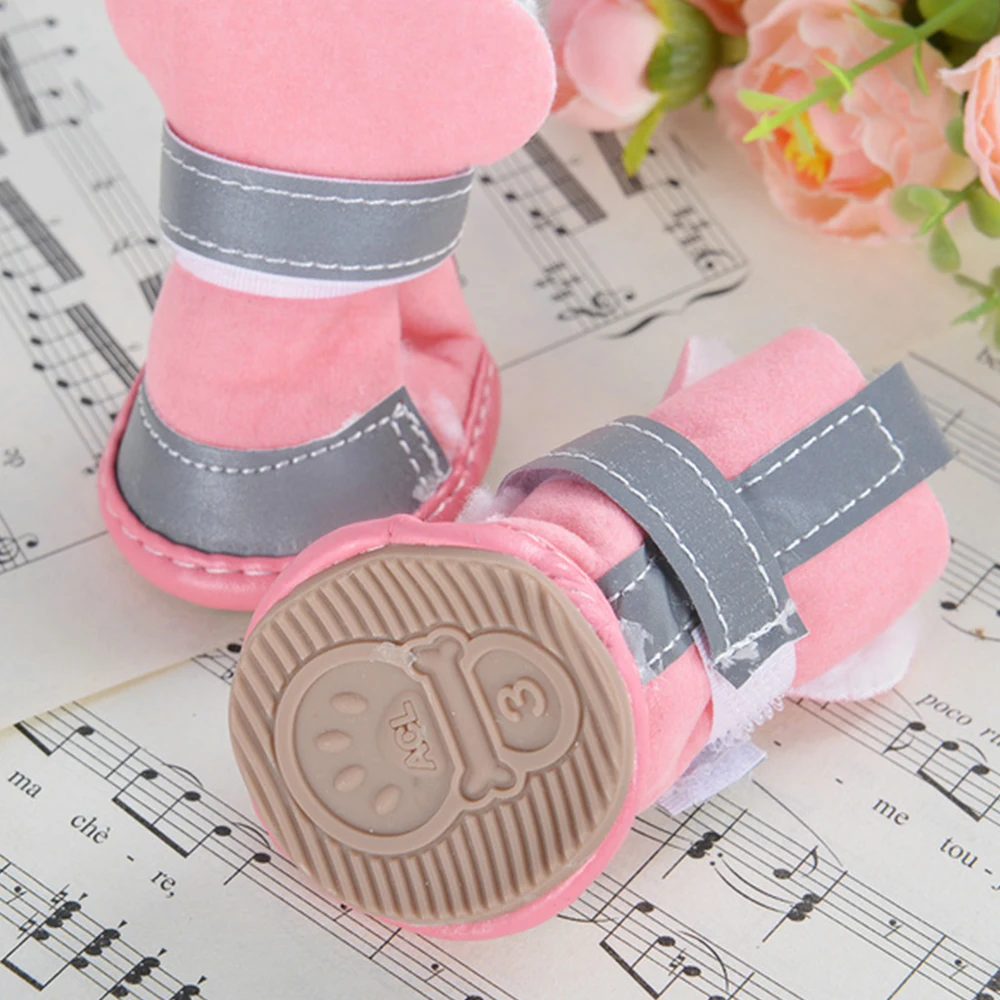 4pcs Pet Dog Shoes Warm Reflective Dog Boots Outdoor Pet Snow Boots Anti-slip Shoes Socks Footwear For Small Medium Dogs
