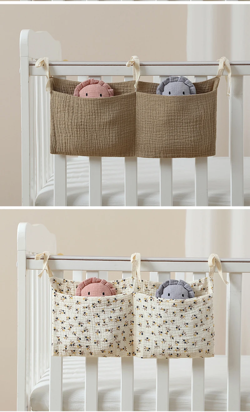 Baby Bedside Hanging Storage Bag 2 Pockets Organizer for Baby Cribs and Toys Hanging Baby Diaper Organizer