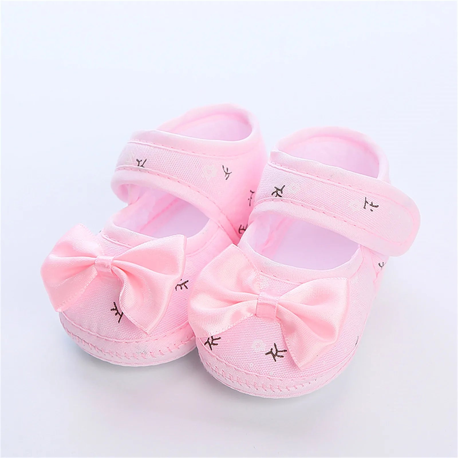 Spring And Summer Children Infant Toddler Shoes Girls Floor Sports Shoes Solid Color Bow Hook Loop Simple And Comfortable