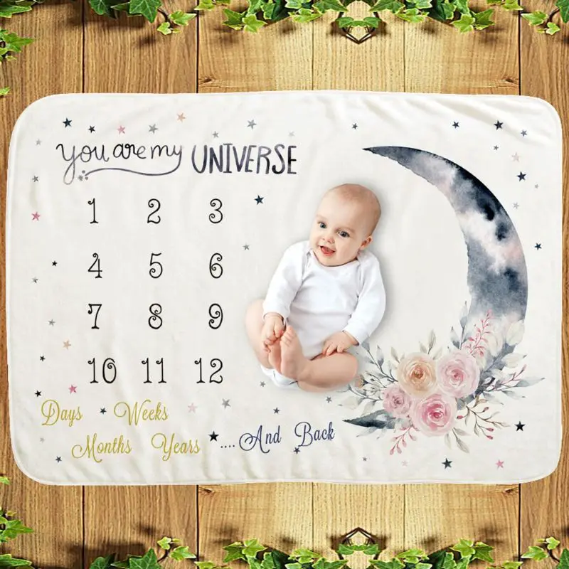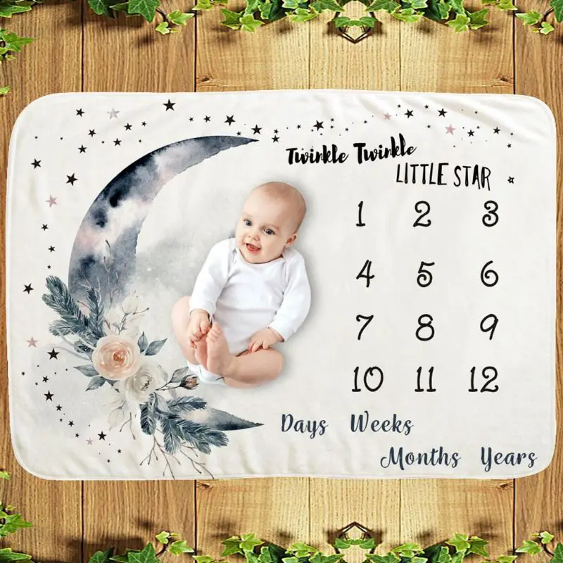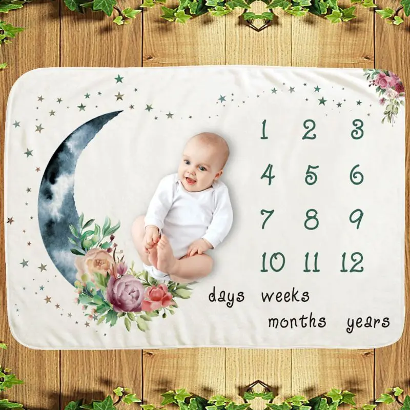 Baby Monthly Record Growth Milestone Blanket Newborn Photography Props Children Photo for Creative Moon Flower Background Cloth
