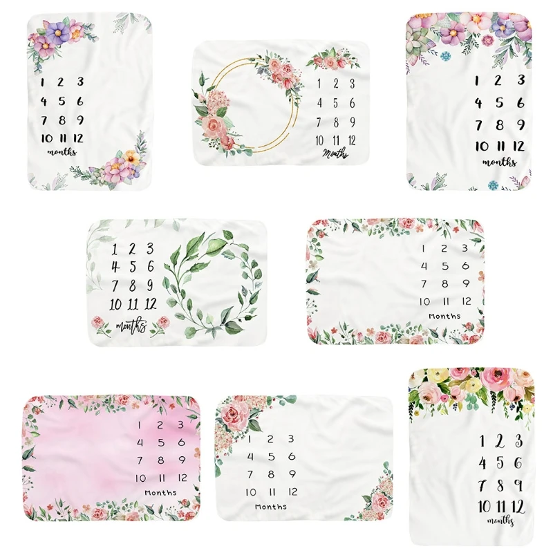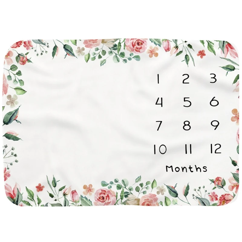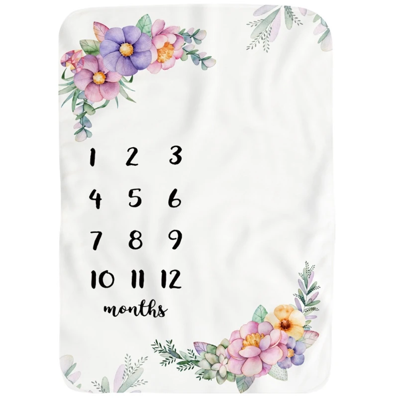 Baby Monthly Record Growth Milestone Blanket Newborn Soft Flannel Floral Printed Photography Props for Cloth 1560