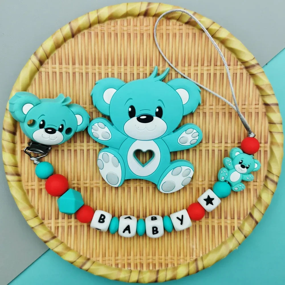 Custom English Russian Silicone Letter Name Baby Bear Silicone Beads Pendant Pacifier Clips Chains Teether Baby Kawaii Toy Gifts