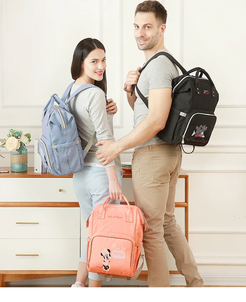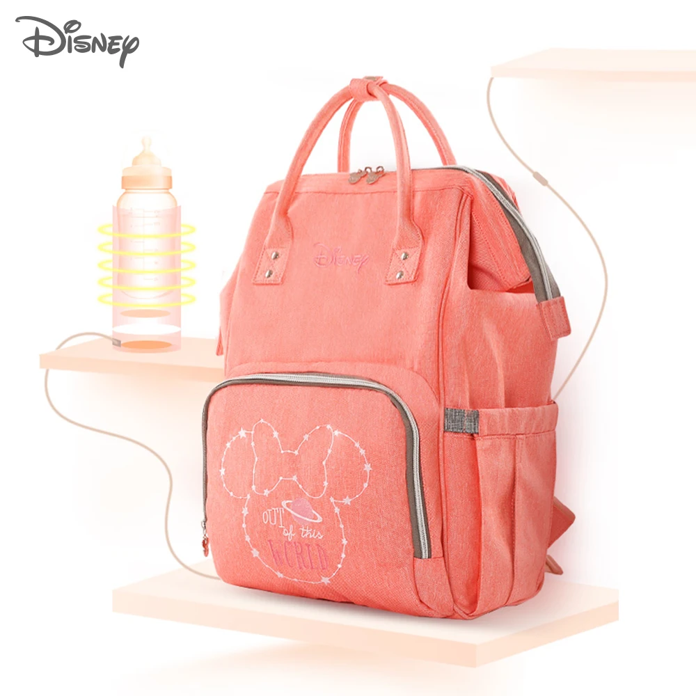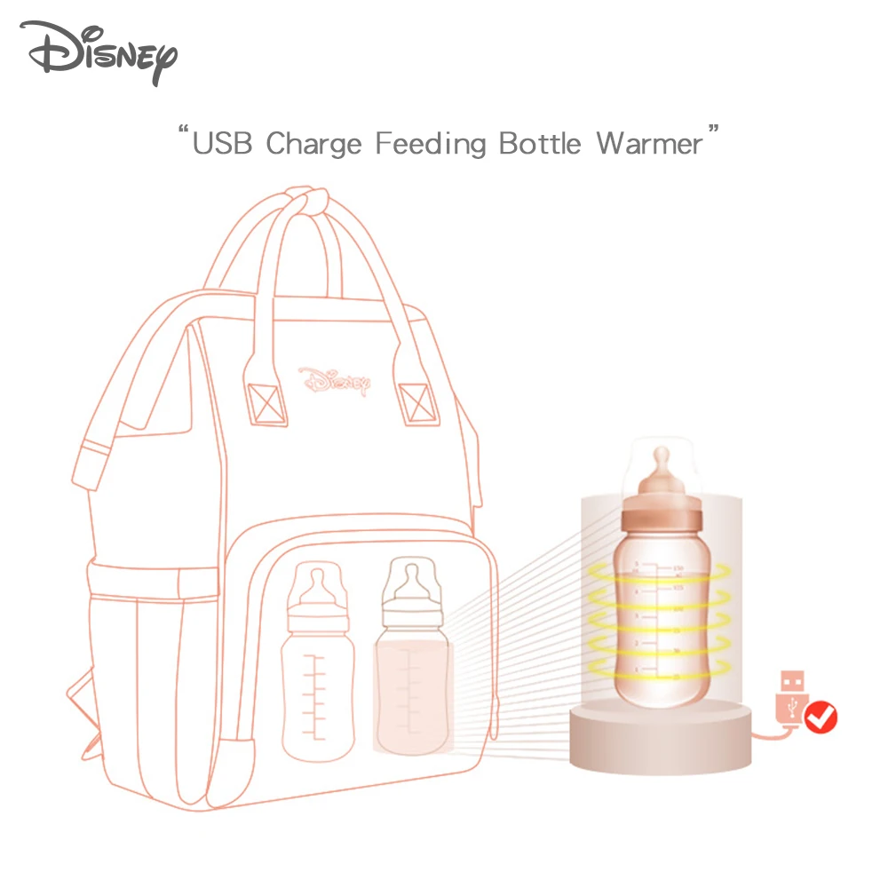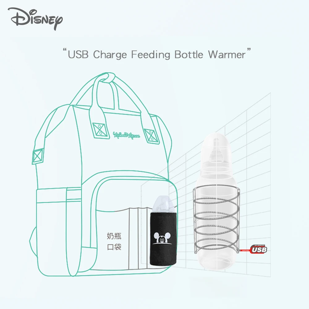 Disney Baby Diaper Backpack Moms Baby Nursing Bag Mother Maternity Nappy Changing Bag Travel Stroller USB Heating Mickey Series