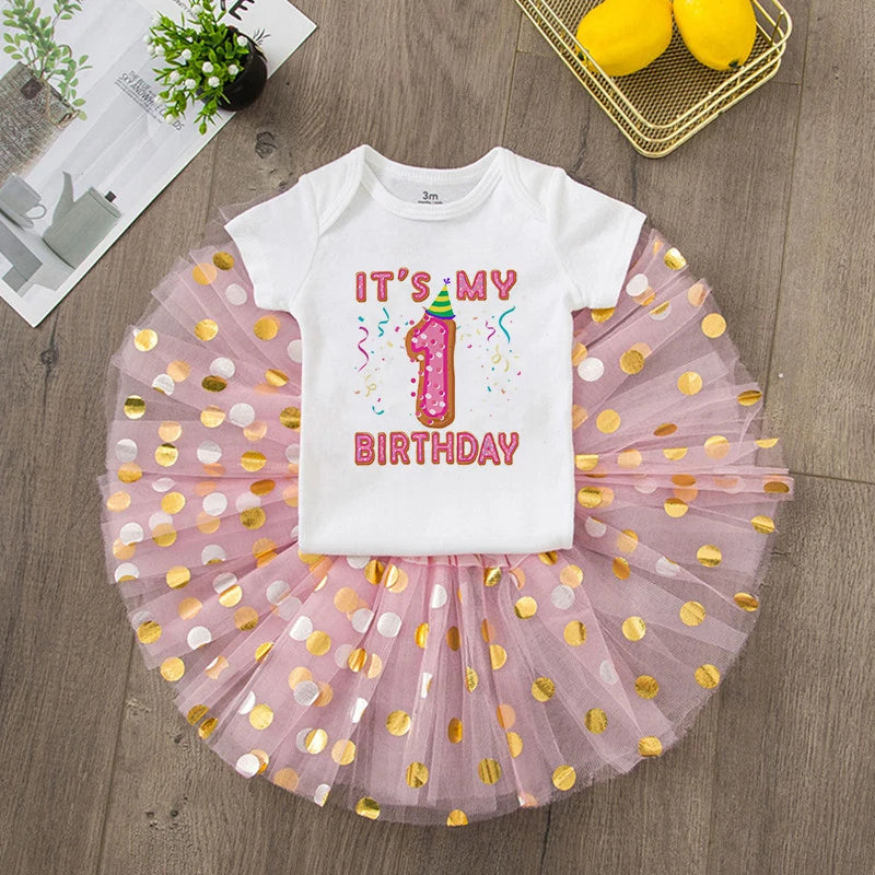 First Birthday Baby Girl Birthday Party Dress Cute Pink Tutu Cake Dresses + Romper Outfits Toddler Girls Summer Clothes Jumpsuit