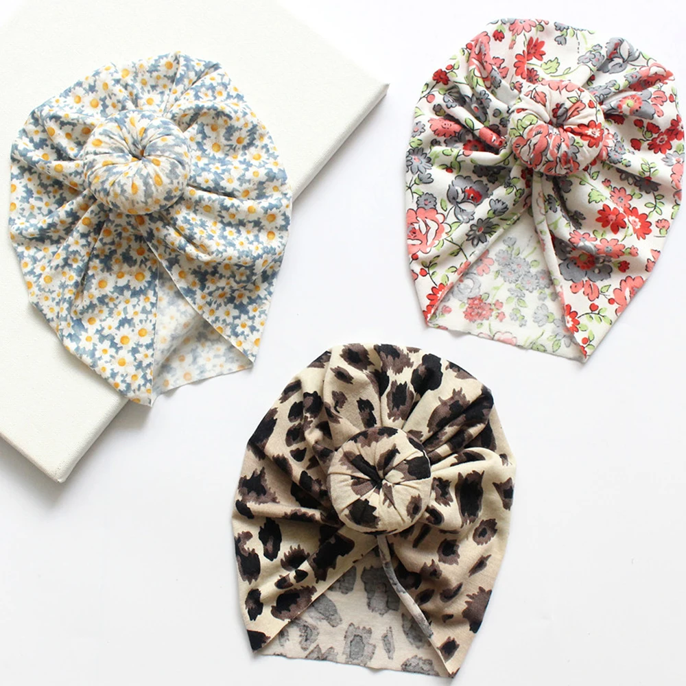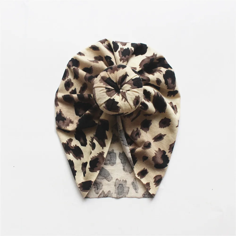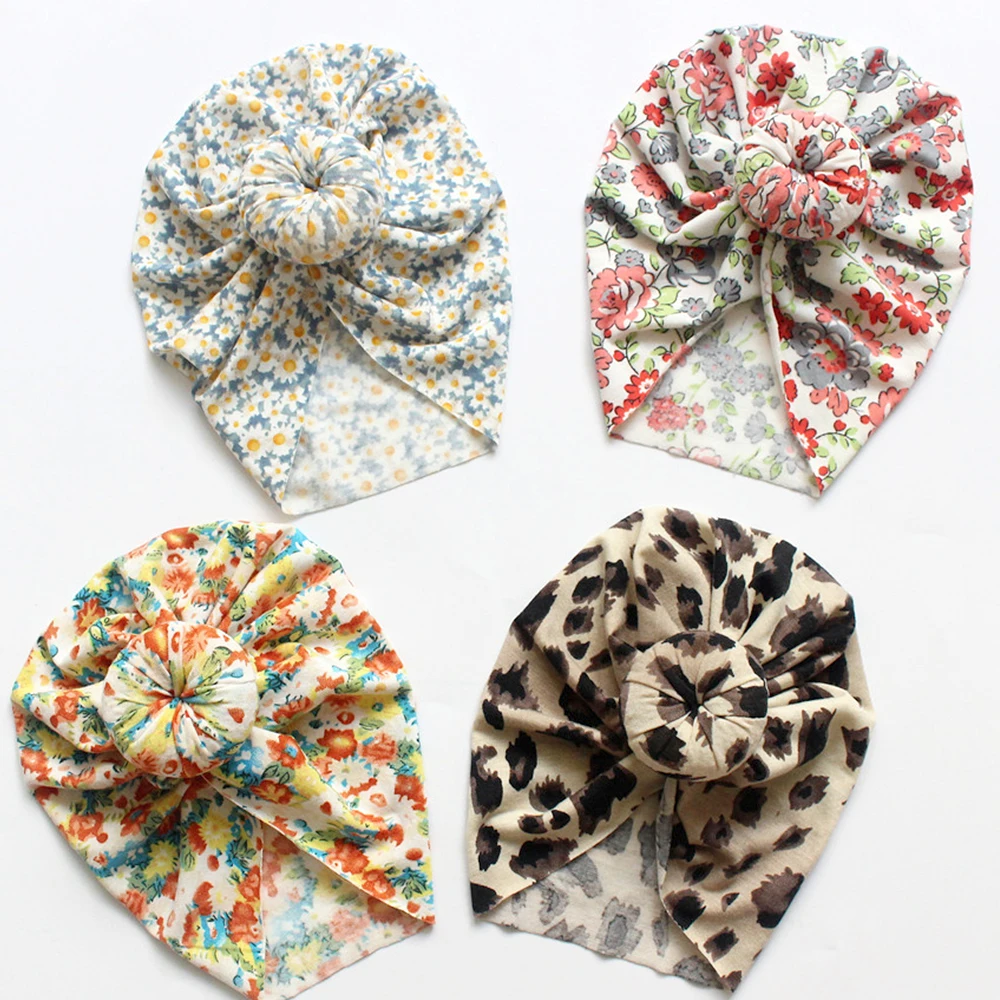 Flower Print Baby Girl Round Ball Beanie Newborn Leopard Donnut Soft Fabric Bonnet Toddler Cute Turban Hat Hair Accessories 0-3T