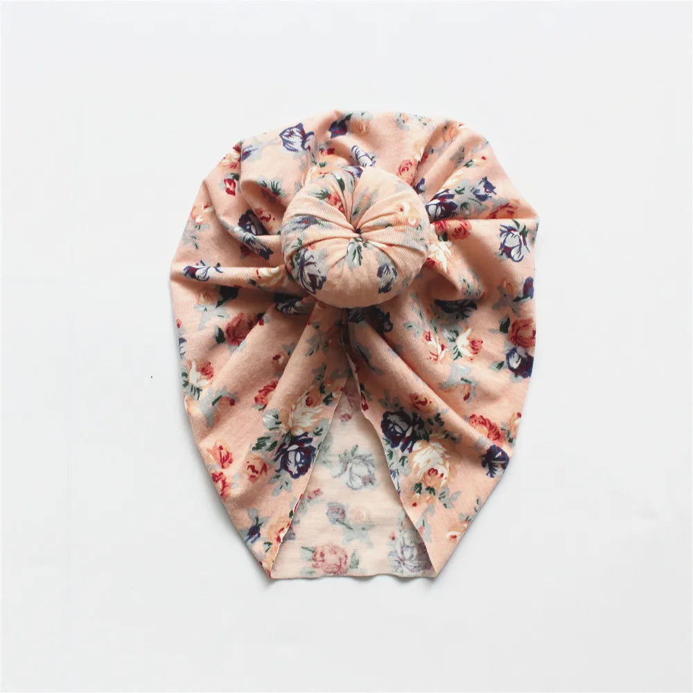 Flower Print Baby Girl Round Ball Beanie Newborn Leopard Donnut Soft Fabric Bonnet Toddler Cute Turban Hat Hair Accessories 0-3T