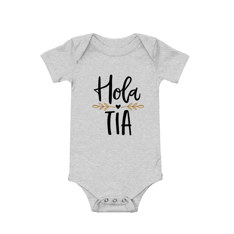 Hola Tio Tia Pregnancy Announcement Baby Bodysuit Jumpsuit Infant Clothing Casual Overalls Pregnancy Gift for New Aunt Uncle