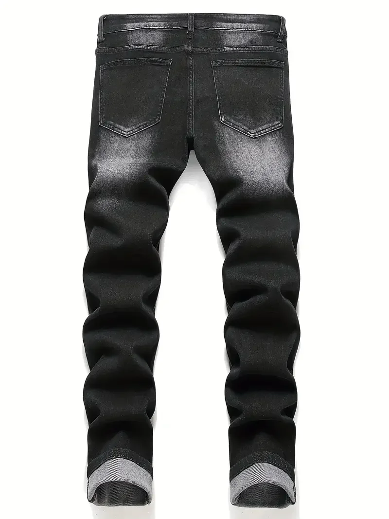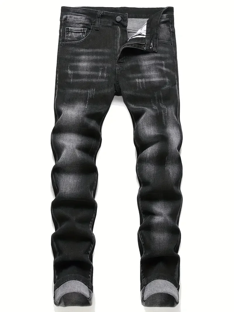 Men's Jeans Casual Straight Stretch Fashion Classic Blue Black Work Denim Trousers Male Brand Clothing