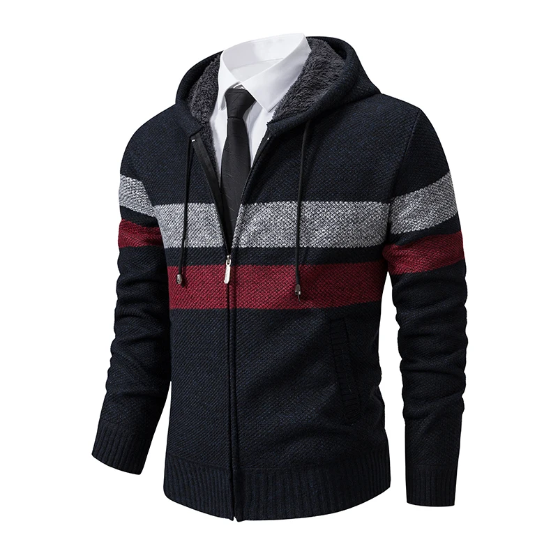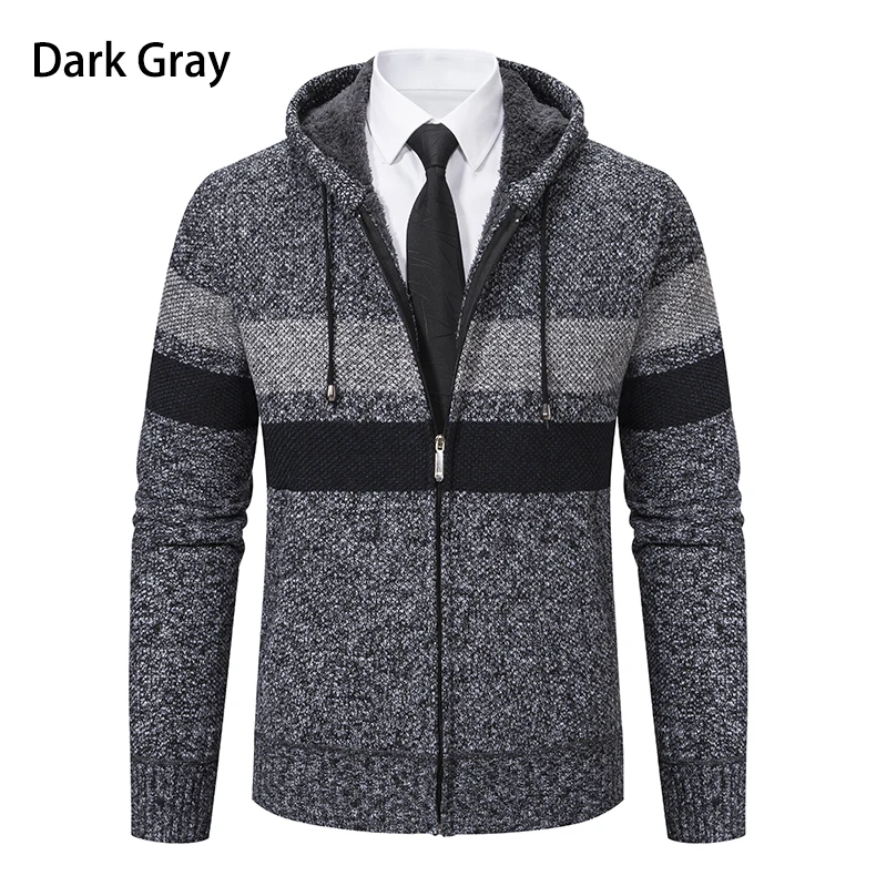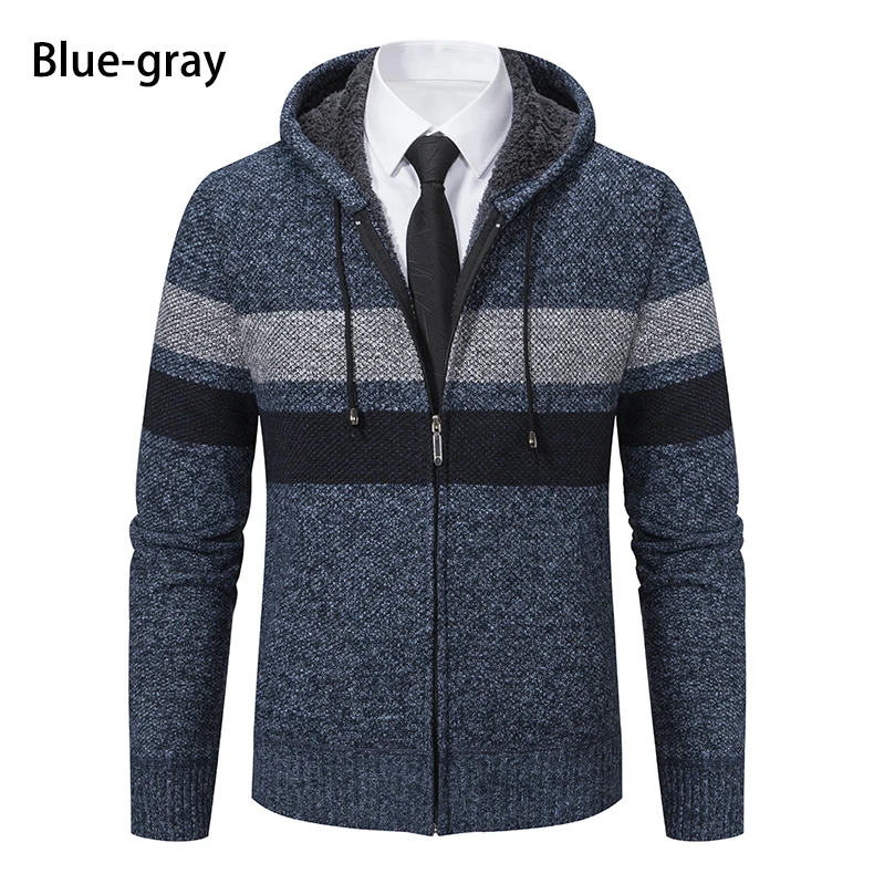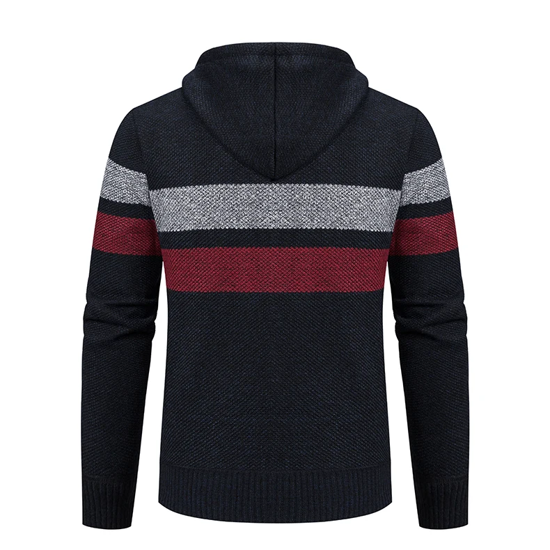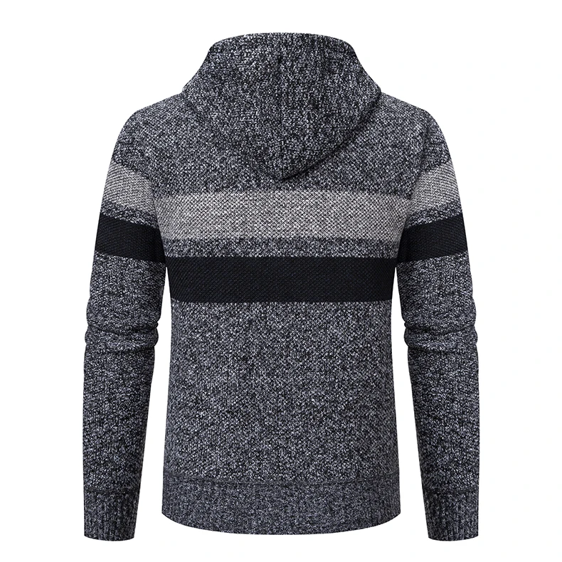 Men's Striped Cardigan Winter Sweater Fleece Jumper Hooded Clothes Harajuku Japanese Casual Windbreaker Korean Knit Jacket Coat