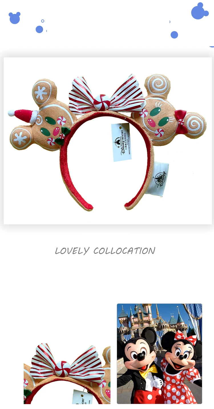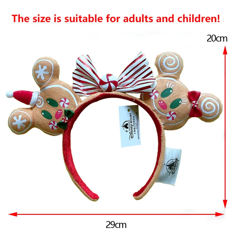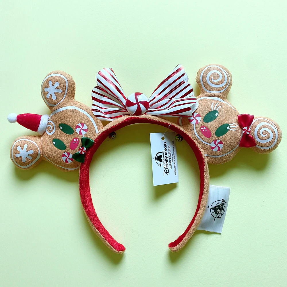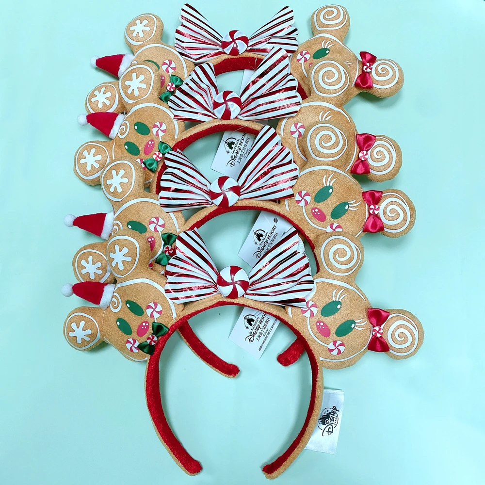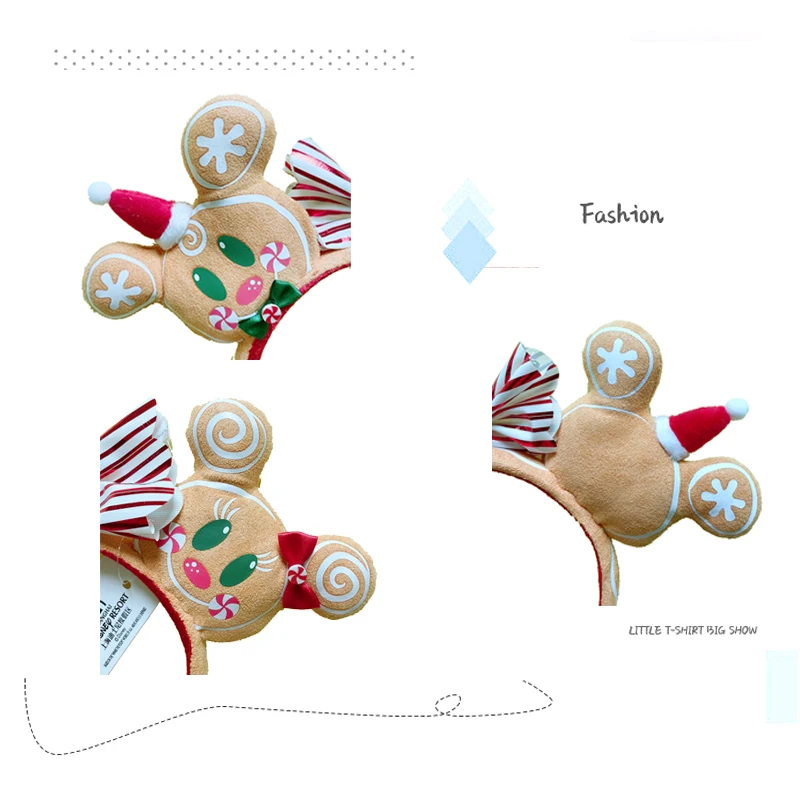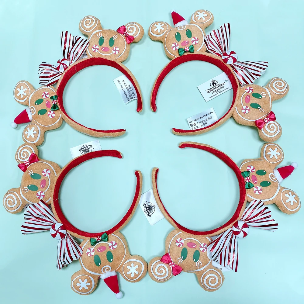 New Disney Minnie Gingerbread Headband 3D Mickey Mouse Ears Christmas Hat Hair Hoop Hairband Party Headwear Girl Toy Gifts