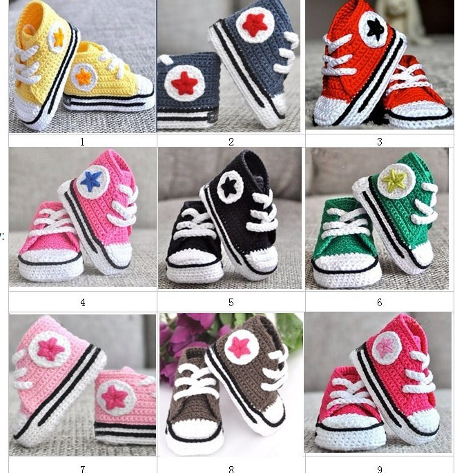 QYFLYXUEQYFLYXUE- Baby crochet sneakers first walk shoes kids sport handmade tennis booties cotton 0-12M 10pairs/lot custom