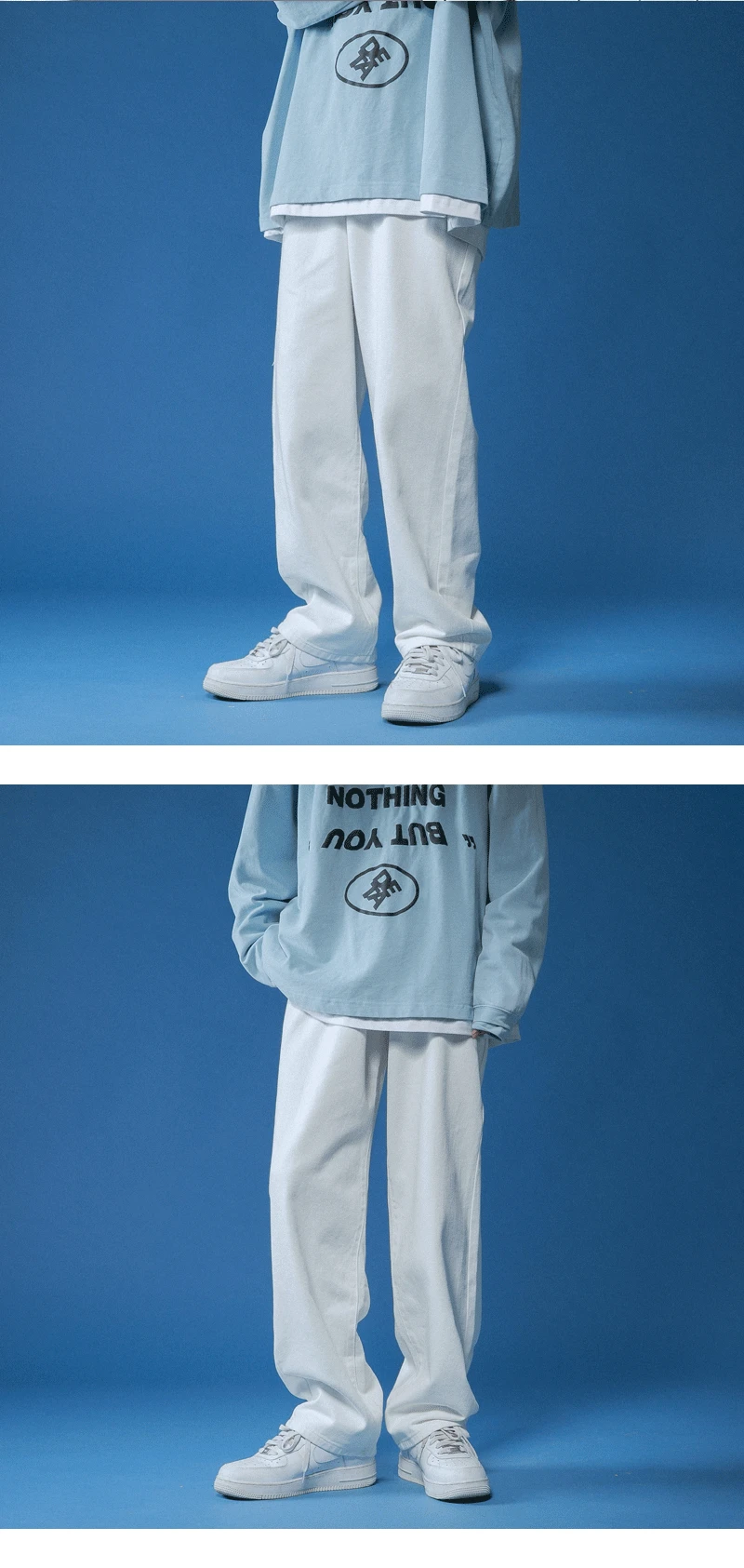 Straight Jeans Men's Autumn White / Black / Ground White Blue Korean Loose Street Men's Casual Solid Color Wide Jeans