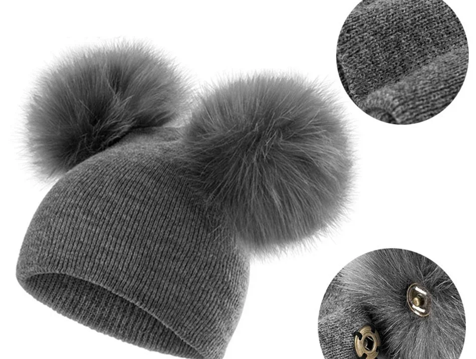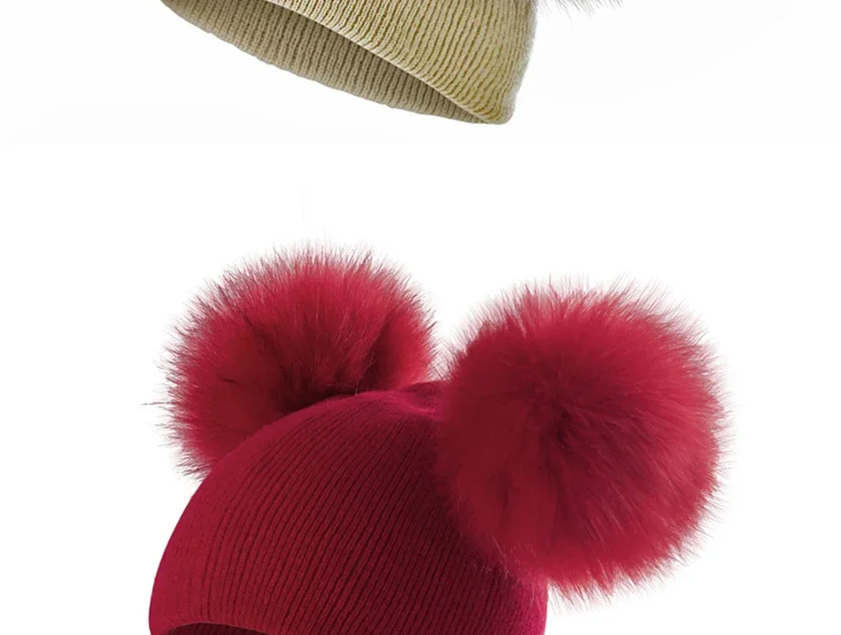 Winter Warm Children Knitted Hat Toddler Kids Baby Wool Hat Knit Beanie Cap Windproof Big Pompom Baby Boys Girls Fur Pom Pom Hat
