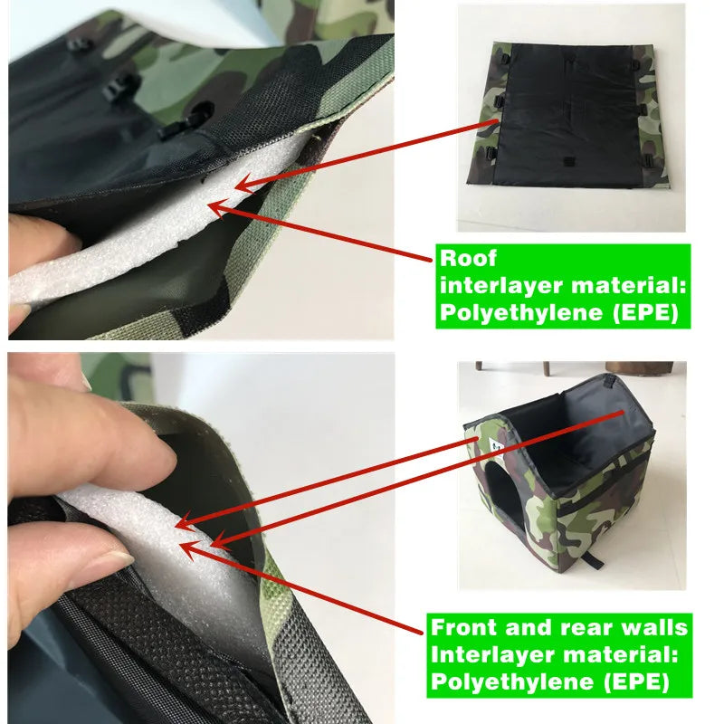 3,Keep Warm: The semi-enclosed pet nest, surrounded by windshields, can be used with heating pads to protect pets from the harsh winter weather. (The product package does not include a heating pad)